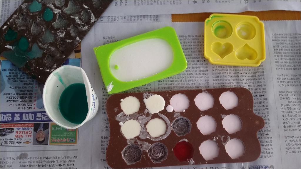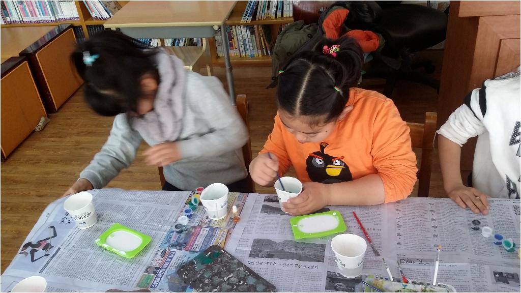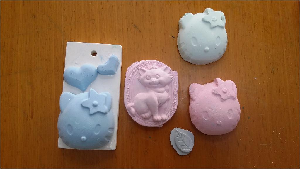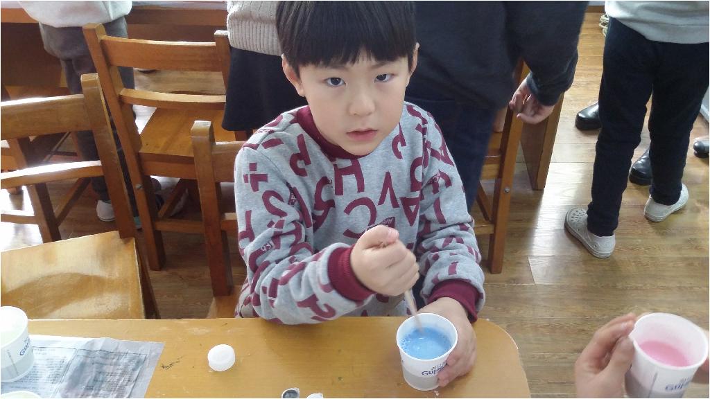 가루석고와 물과 물감을 이용하여