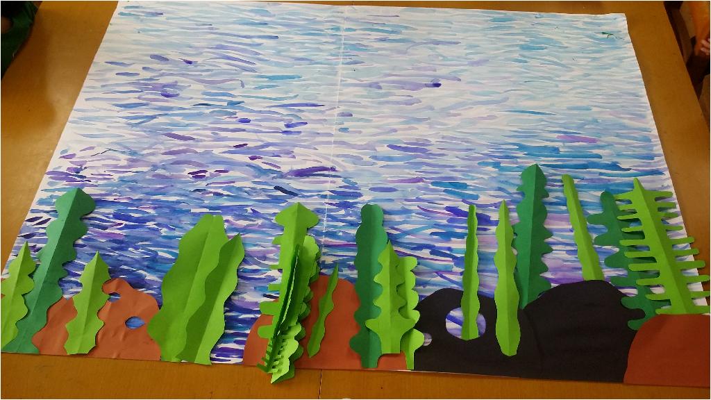해초들을 직접 그리고 오려 붙이기를 반복해서