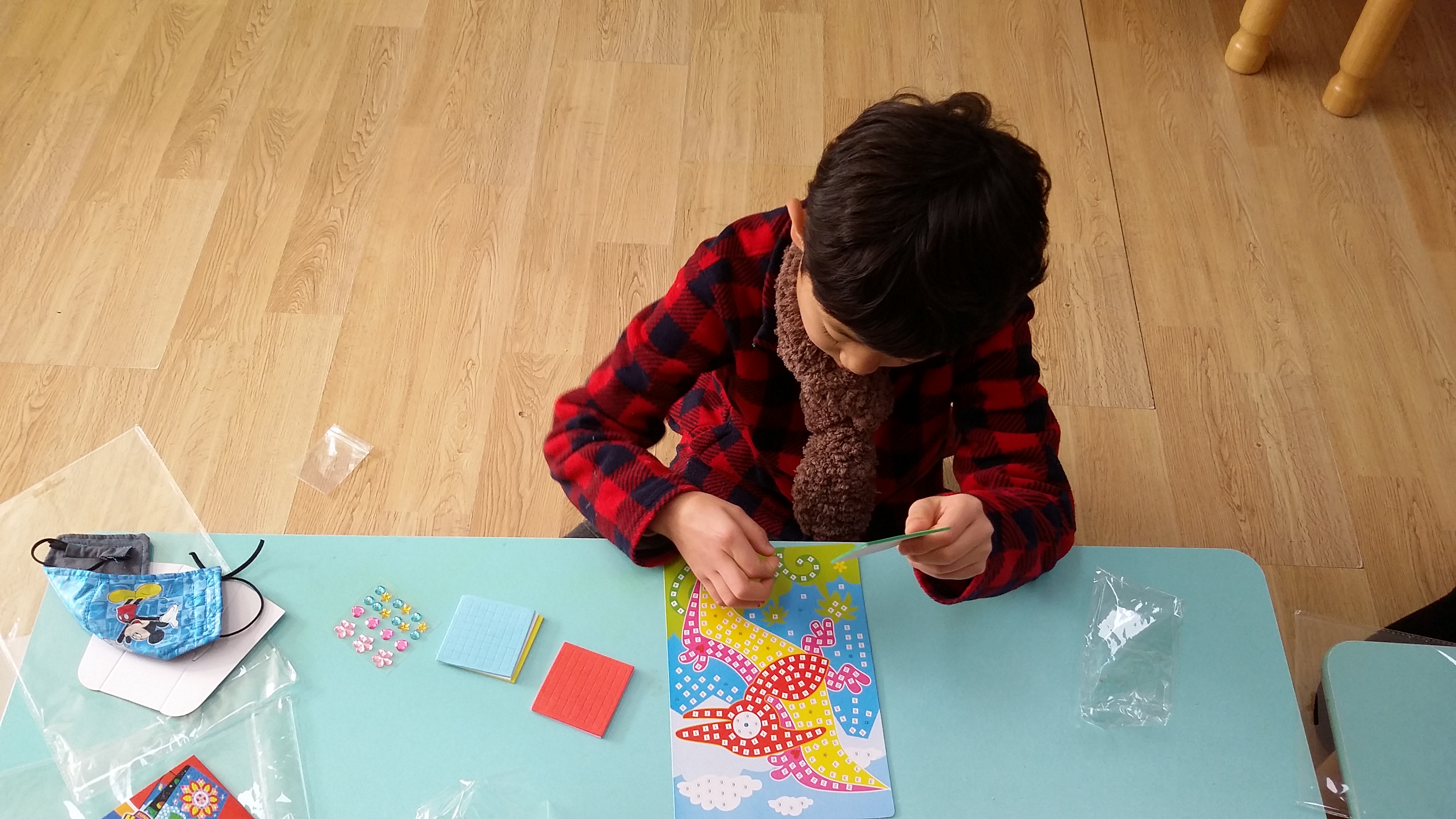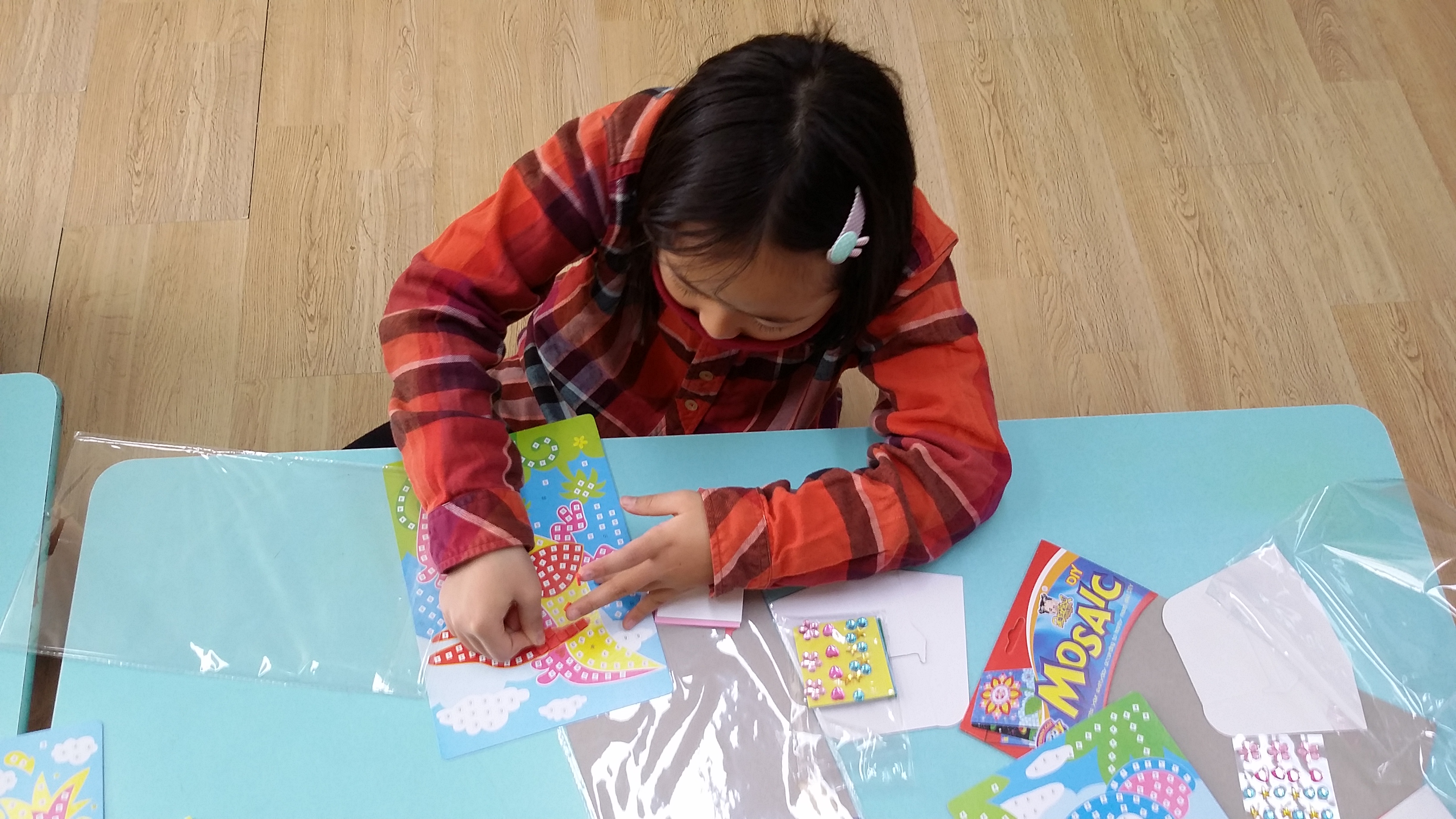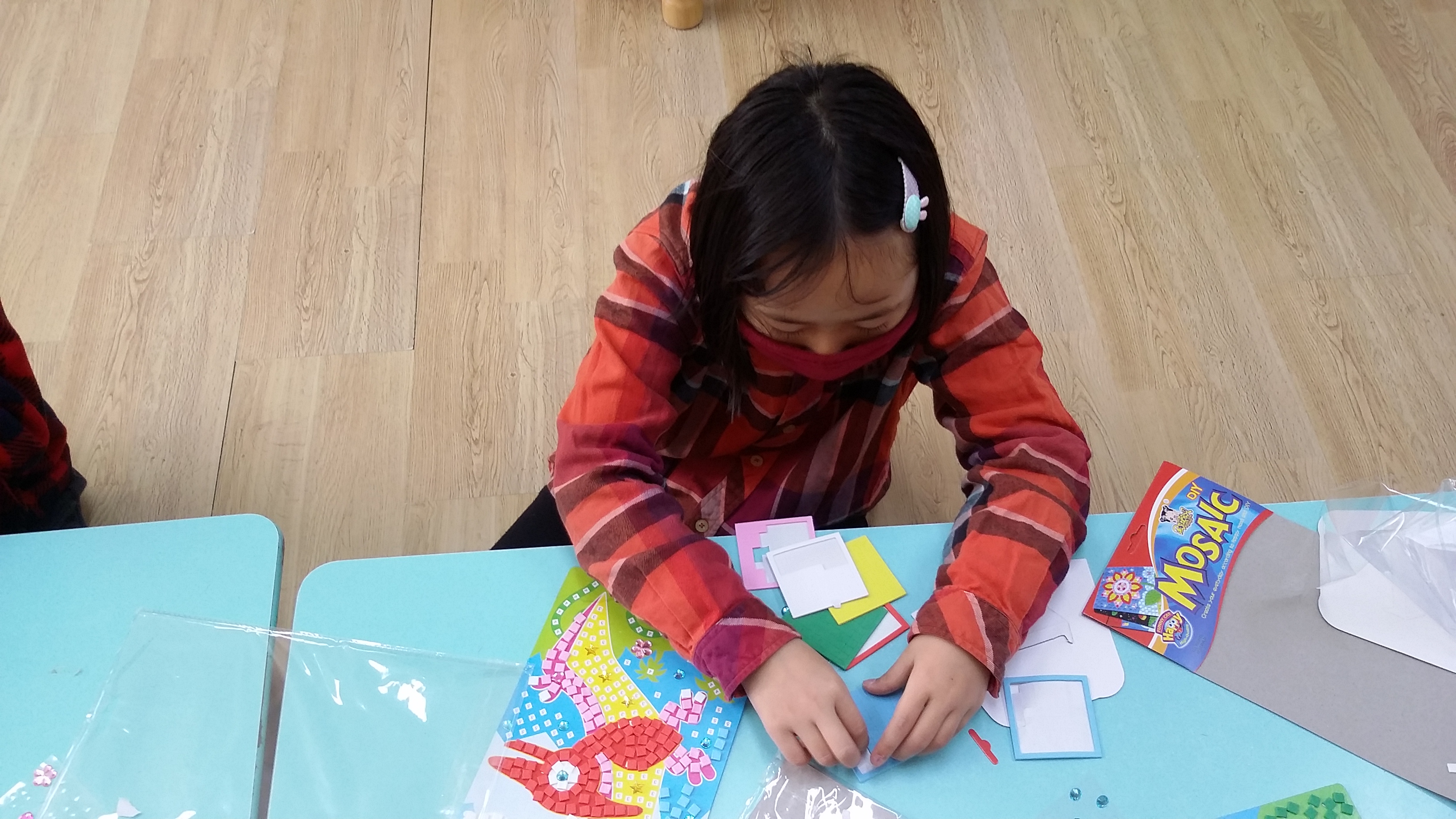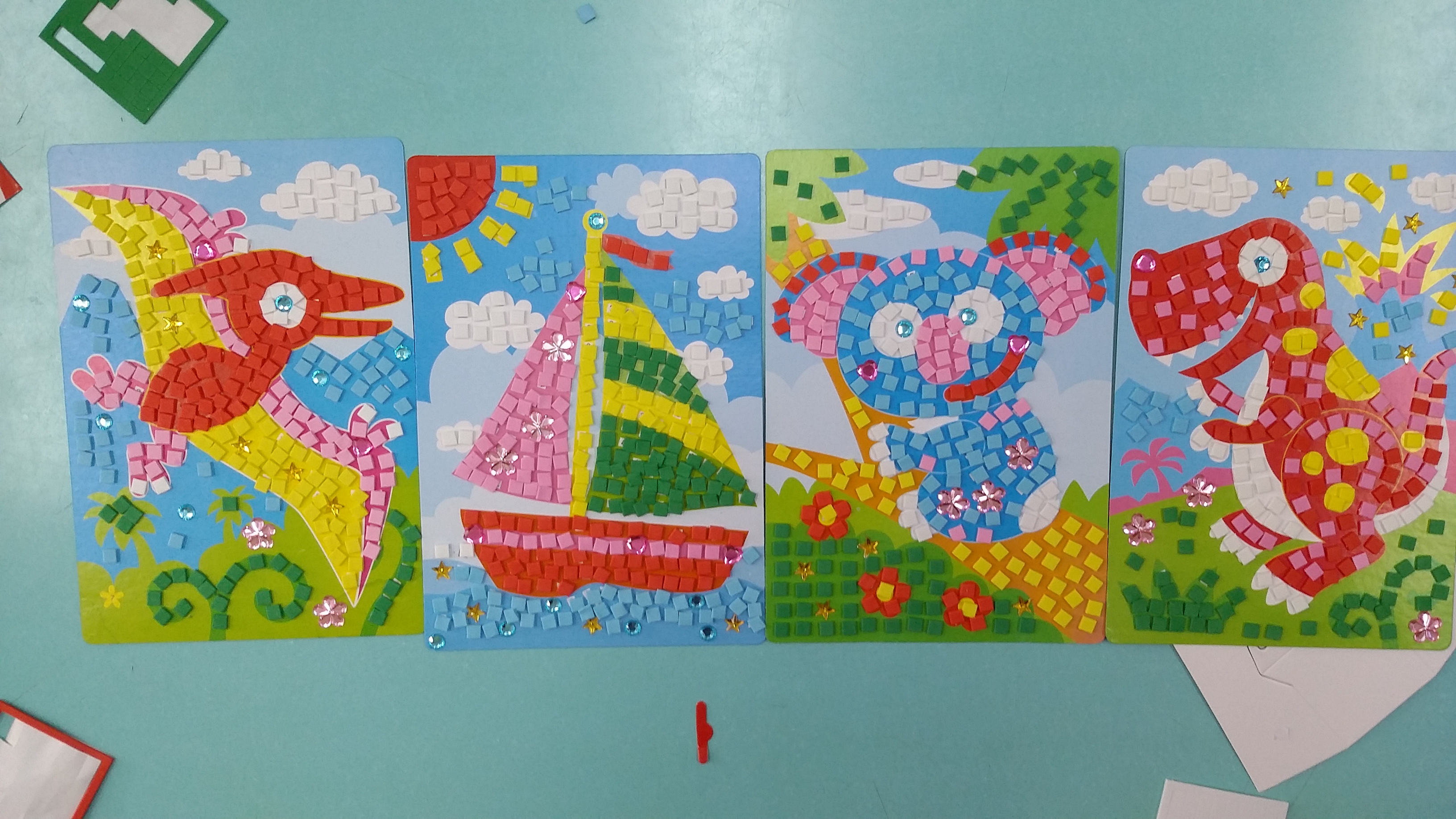 알록!달록 스티커 모자이크를 꾸며보았어요.