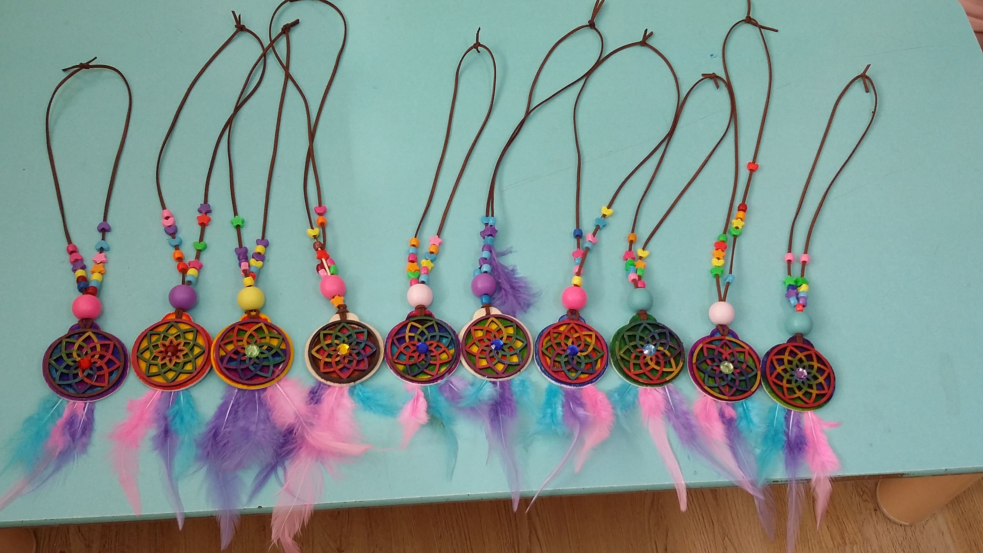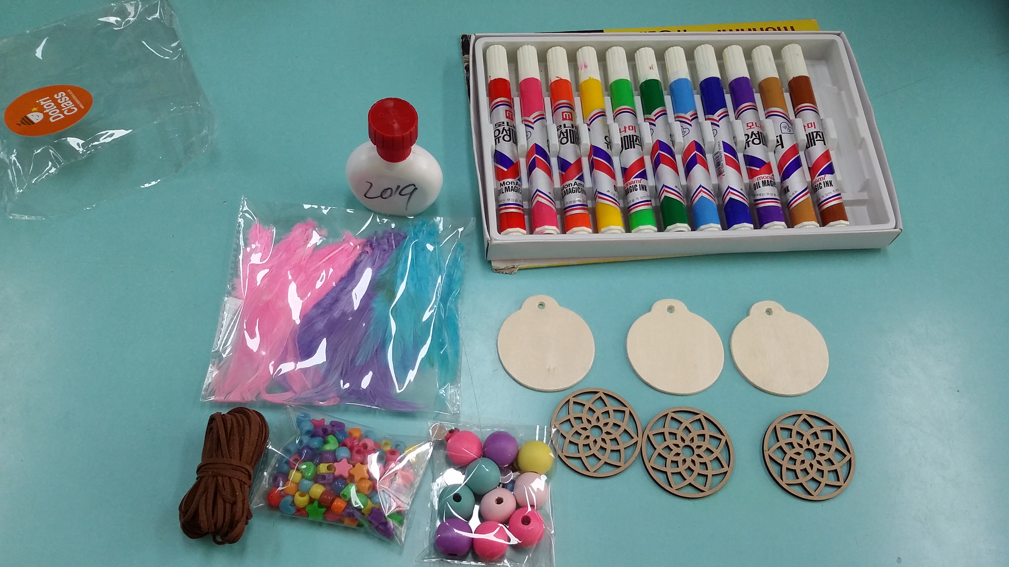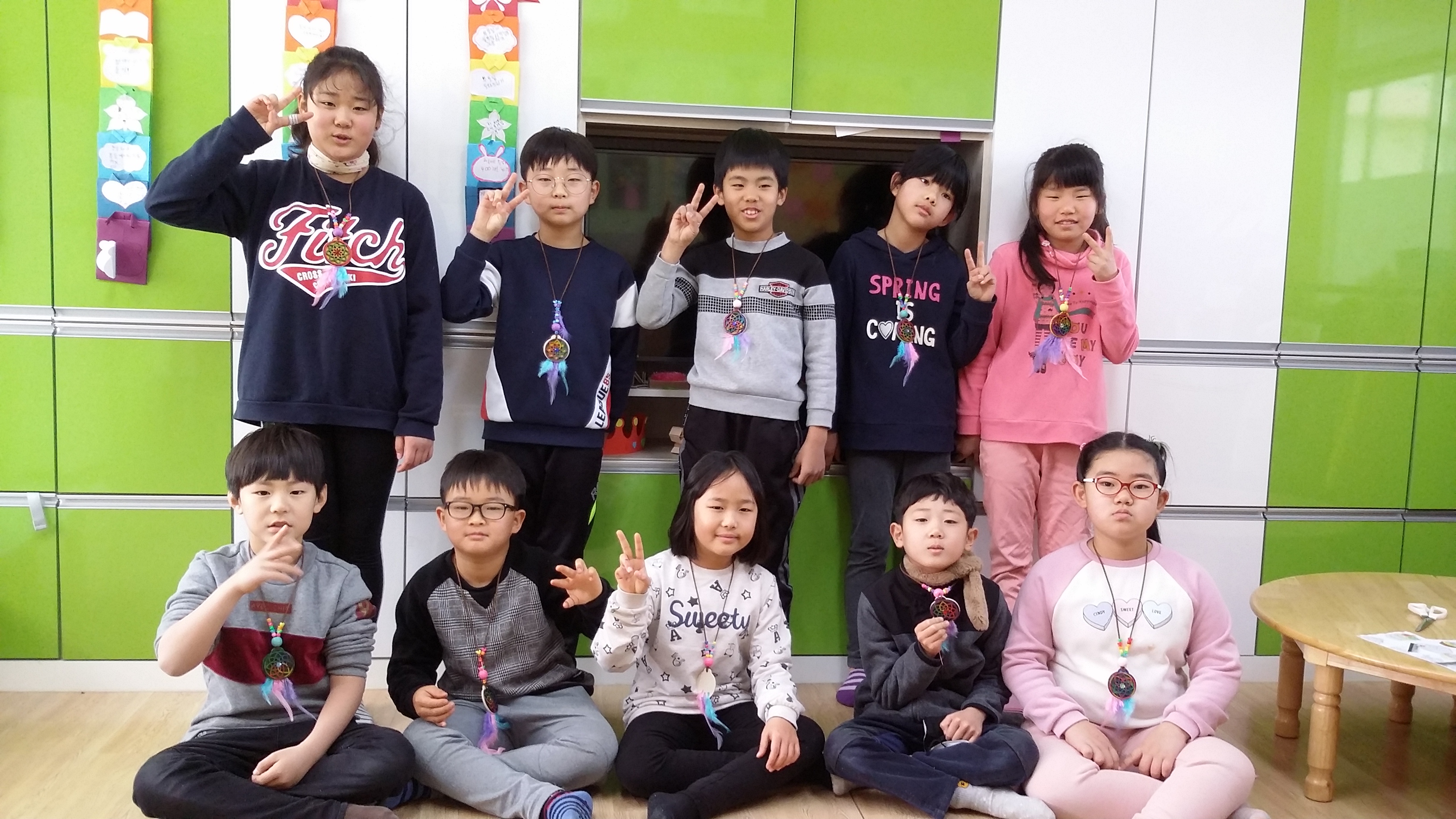 봄방학 돌봄교실 학생들과 드림캐쳐 목걸이를 만들었어요.