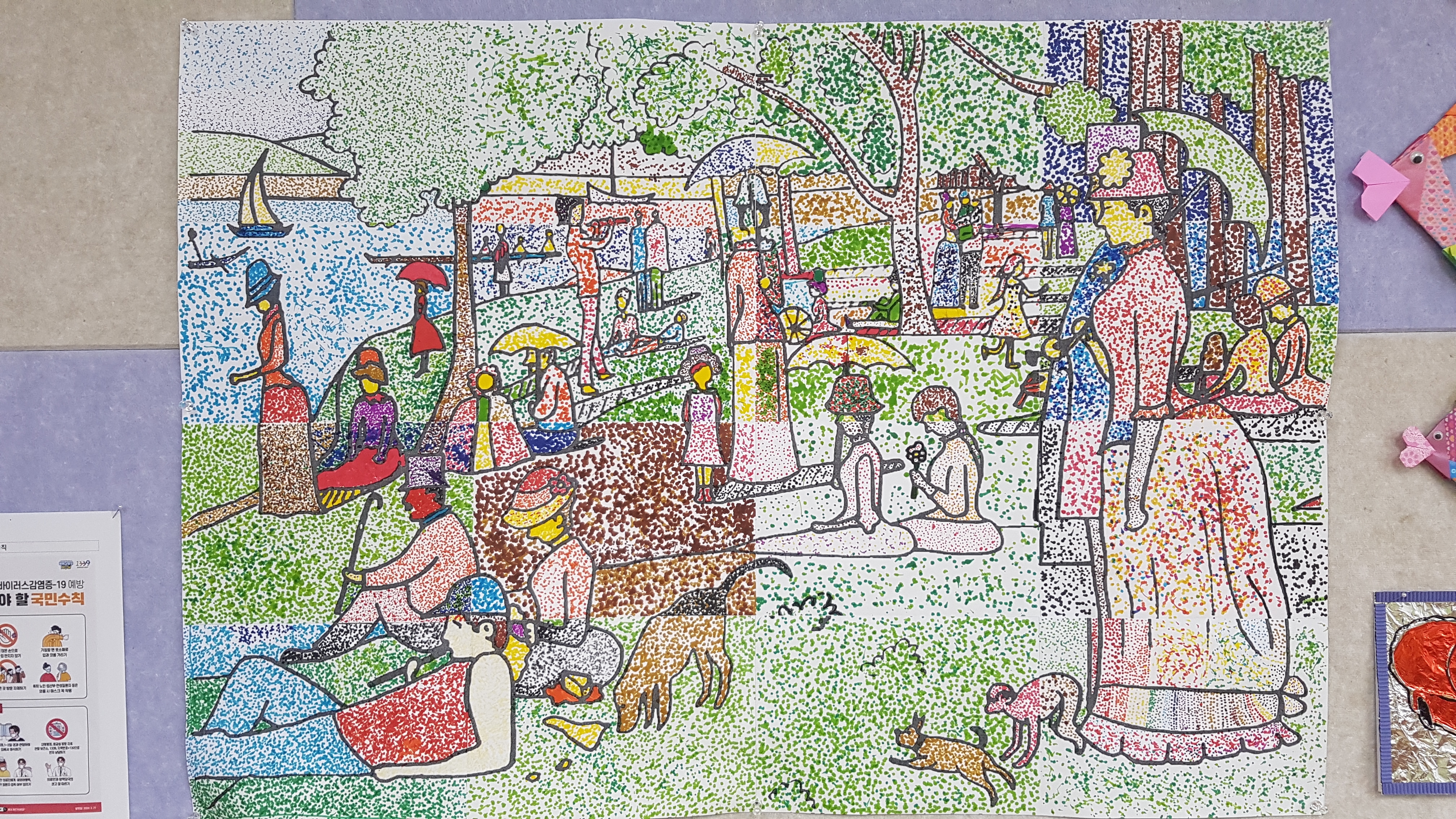 한땀 한땀 열심히 점을 찍어 멋진 협동화가 완성 되었어요