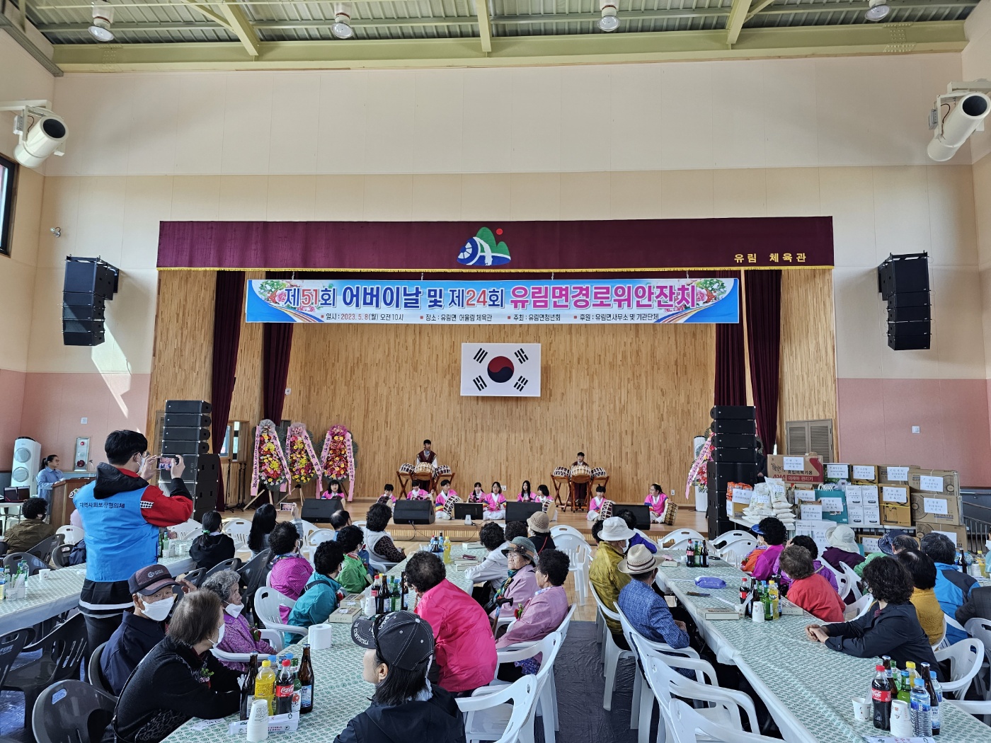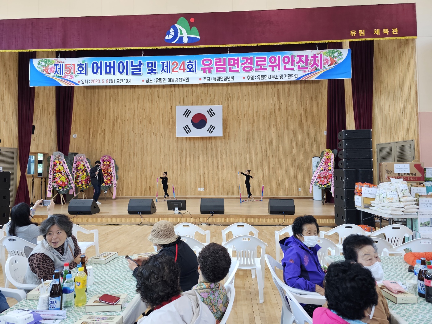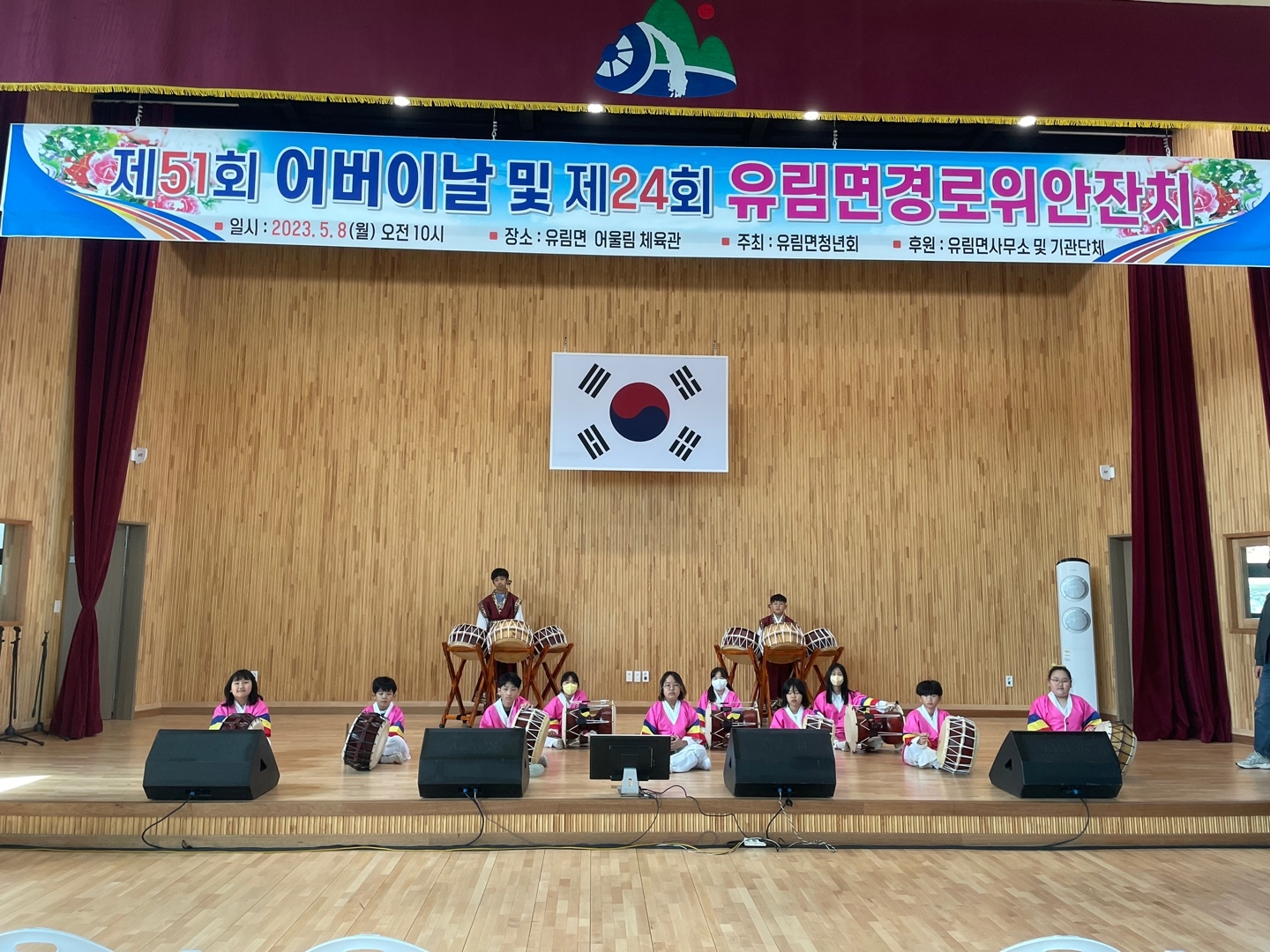 유림초등학교(교장 이옥임)는 5월 8일(월) 어버이날을 맞이하여 유림면 청년회가 주관하는 유림면 어버이날 기념식 및 경로잔치에 축하 공연으로 초대되었다. 코로나19로 한동안 축하 공연을 하지 못하였지만 유림면 경로잔치에서의 유림초등학교 어버이날 효도 공연은 예전에도 꾸준하게 해왔던 유림초등학교의 전통 축하공연이다.