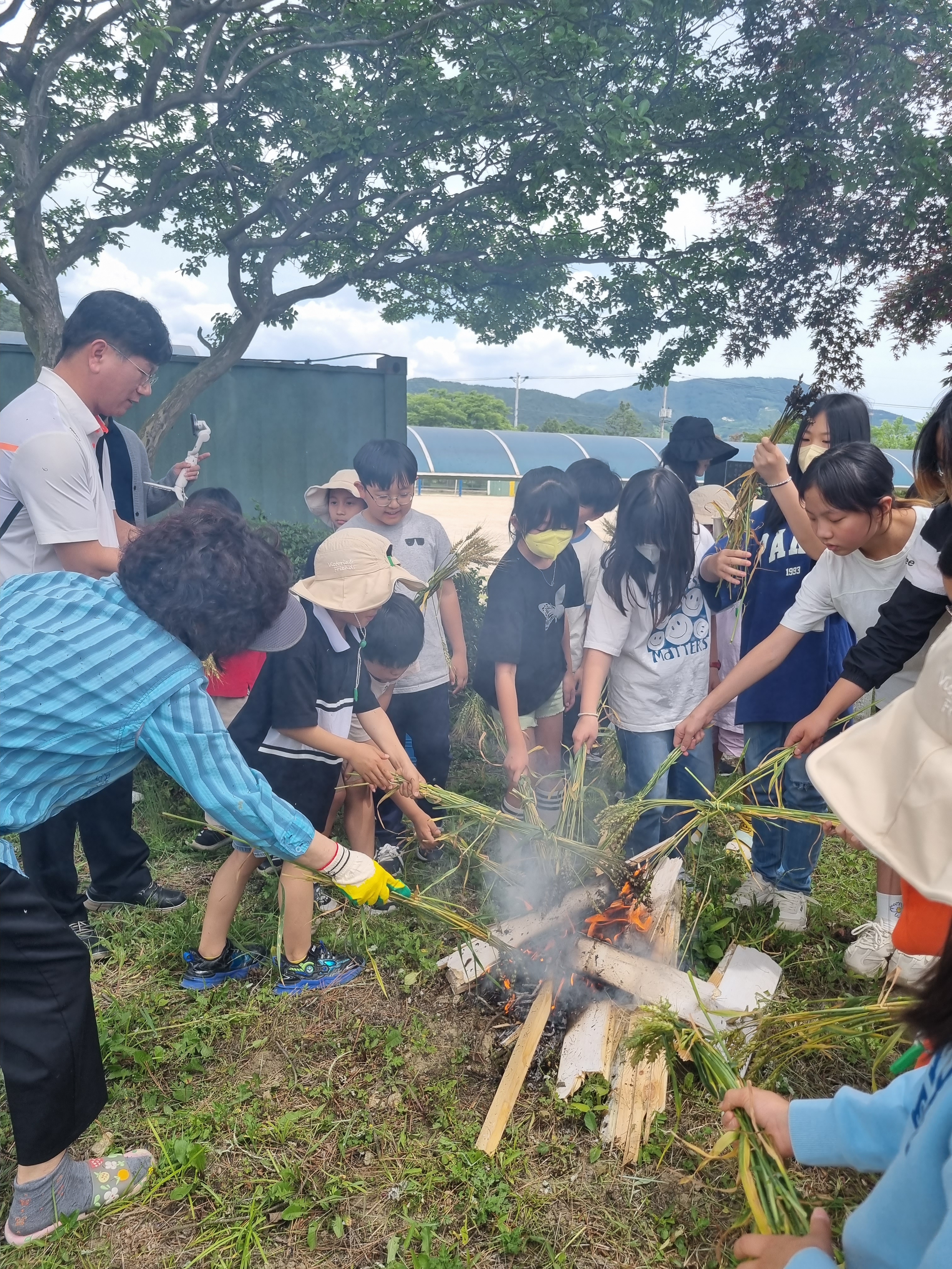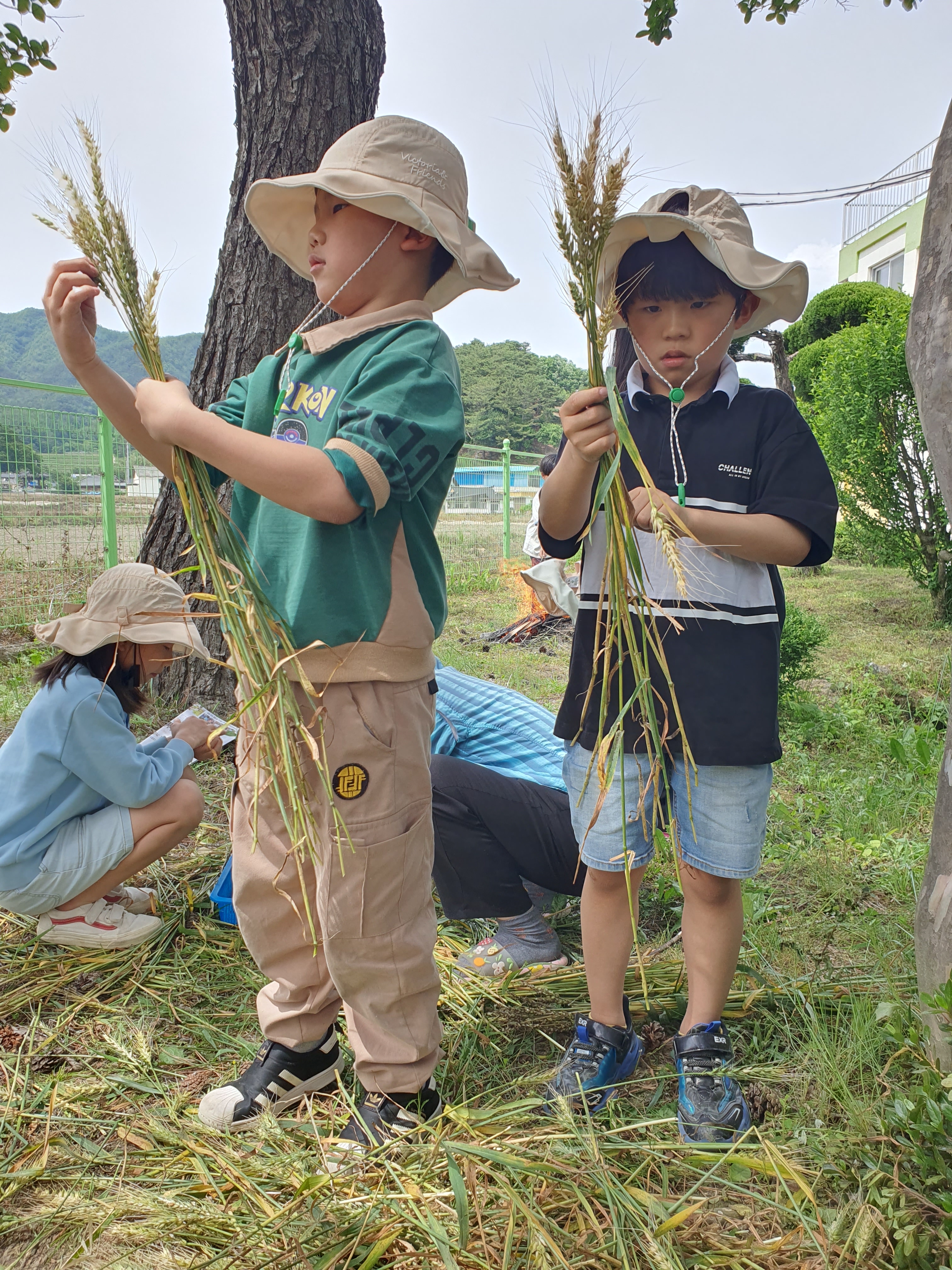 유림초, 우리밀로 「추억의 밀사리 체험」을 했어요! -애들아~모여라! 우리, 밀사리 하자- 유림초등학교(교장 이옥임)는 5월 24일(수), 유치원 및 전교생이 5월 공감의 날을 맞이하여 학교 텃밭에서 직접 기른 우리밀을 이용하여 밀사리 활동을 하였다. 이 행사는 지난해 겨울, 우리밀 살리기 운동본부에서 추진하는 ‘겨울철 우리밀 푸른교정가꾸기 사업’ 에서 무상으로 종자를 공급받아, 학교 텃밭과 화단에 씨를 뿌려 학생들의 정서 함양은 물론 국민 제2의 주식인 우리밀의 성장과정 관찰하기와 다양한 체험의 기회를 제공함으로써 우리밀에 대한 관심을 갖기 위하여 추진되었다. ‘밀사리’는 밀밭에서 잘 익은 이삭을 꺾어 모닥불에 그을려 손으로 비벼 한입에 털어 넣어 허기진 배도 채우고 오랫동안 꼭꼭 씹어 껌처럼 먹었던 전통풍습을 말한다. 화단에 늘어선 밀을 잘라 한 줌씩 잘 묶은 후 체험장소로 이동한 학생들은 담임교사와 함께 불에 조심스럽게 구워 식힌 후 손으로 비벼 먹는 활동을 직접 해 보았다. 손과 얼굴에 숯검정이 묻어도, 밀을 익히느라 얼굴에는 땀이 흘러도 신기한 체험과 먹거리에 대한 즐거움으로 웃음소리가 흘러넘치는 즐거운 시간이 되었다. 밀 줄기에 적당히 물이 오르고 야물어졌던 지난 4월에는 교감선생님의 지도하에 전교생이 ‘밀피리 만들기’와 ‘밀피리 불어보기’ 라는 이색적이고도 신나는 체험을 하였으며, 2주 후 밀대가 조금 더 익어 야물어지면 ‘여치집 만들어 보기 체험’도 계획 중에 있다. 유림초 000 학생은 “처음에는 그냥 풀인 줄 알았는데 우리가 좋아하는 빵과 과자의 재료가 되어주는 밀이라는 것을 알게 되었고, 다양한 체험을 하게 되어서 너무 신이 나요. 다음에 있을 여치집 만들기에도 도전해 볼 거예요.”고 말했다.